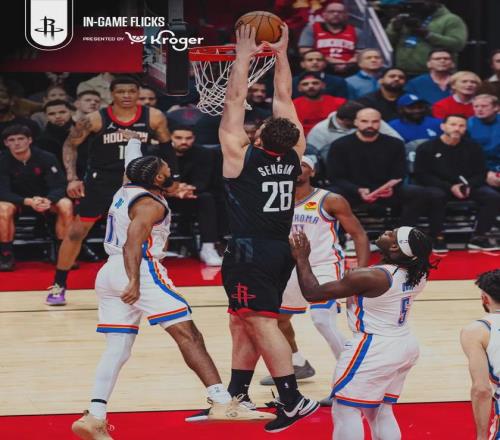 火箭在防守端做了精心布置,阿门和奥科吉夹击亚历山大。面对两个防守大闸,亚历山大首节2中0仅得0分1助3失误。雷霆也给足身体对抗,杜兰特首节7中1只拿到2分。申京退防太慢,霍姆格伦里突外投,首节4中4狂砍11分3板。