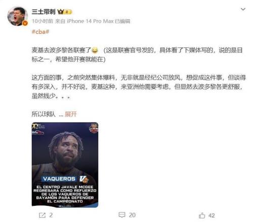 近期有消息称北京首钢队有意NBA冠军中锋麦基,双方经过多轮谈判,已经接近拿下。不过今天上午有媒体人的消息称他已经加盟波多黎各联赛,后面麦基的经纪人团队又出来辟谣,说麦基只考虑加盟欧洲联赛或CBA,消息真真假假,让人眼花缭乱,不过综合多方面的消息来看麦基的下家并未确定,北京首钢队还有很大的机会。