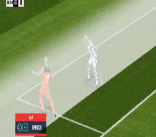 第45+7分钟,亚马尔禁区内倒地,主裁听取VAR后判罚越位在先取消点球