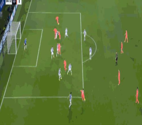 第9分钟,费尔明破门,但是因奥尔莫先前抢断犯规被判无效
