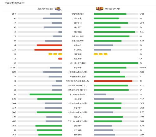 北京时间1月19日西班牙足球甲级联赛 联赛 第20轮,皇家社会主场对阵巴塞罗那。上半场,奥亚萨瓦尔凌空抽射破门。下半场,亚马尔助攻,拉什福德扳平。不过,格德斯很快便抽射得分,帮助皇社再次领先。巴萨整场比赛3个进球被吹,另外5次击中门框。全场比赛结束,巴萨1-2不敌皇社,各项赛事11连胜被终结。